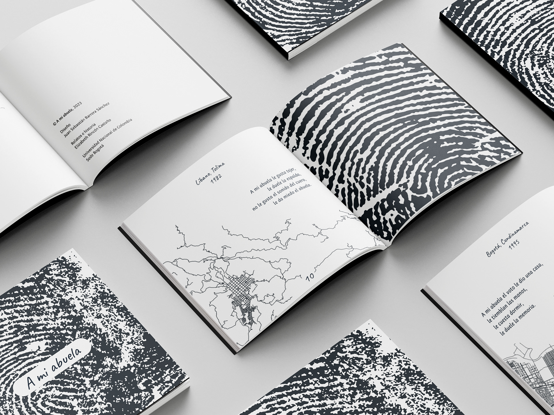 "A mi abuela", nació de las tardes de chocolate que comparto con ella, fue en una de esas conversaciones que comencé a descubrir lo complicada que había sido su vida. Por eso, en este libro quise honrar su historia, no solo reconociendo las dificultades, sino también remarcando sus momentos de felicidad donde a partir de la huella como territorio y los lugares que ella habitó, narro con pequeñas frases una pequeña parte de su vida.
